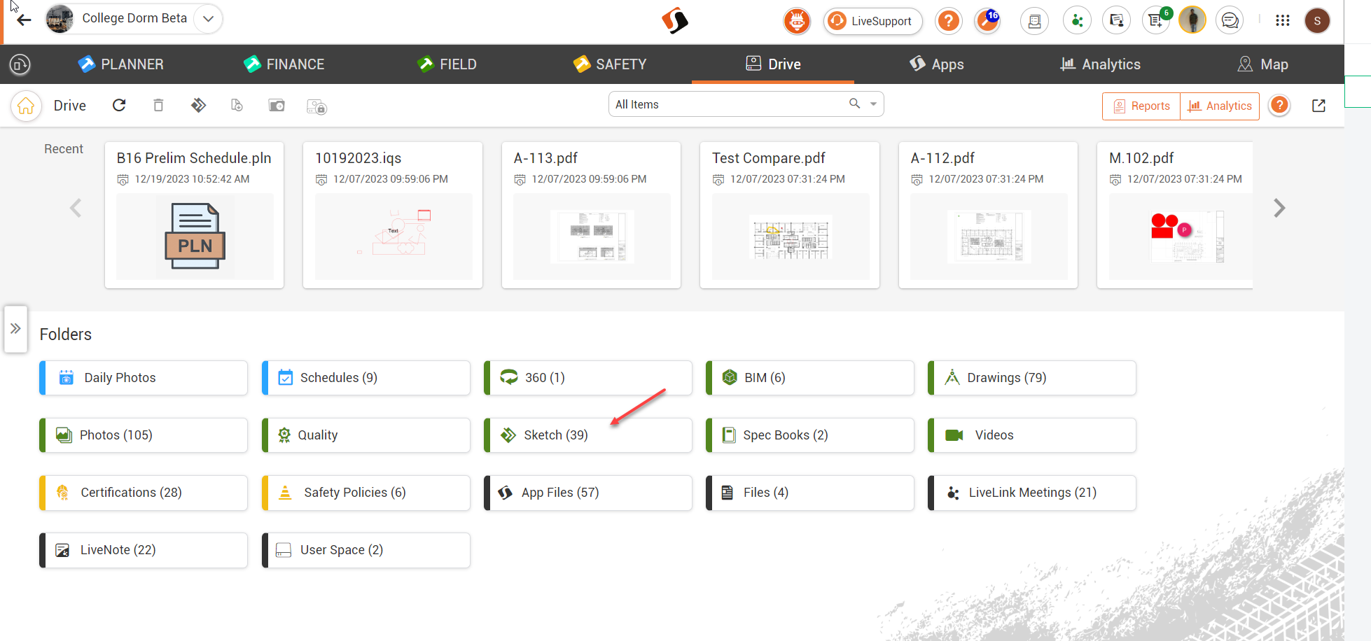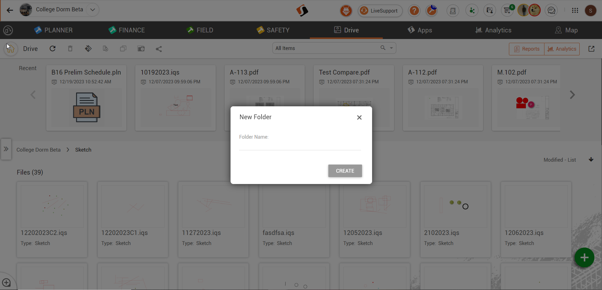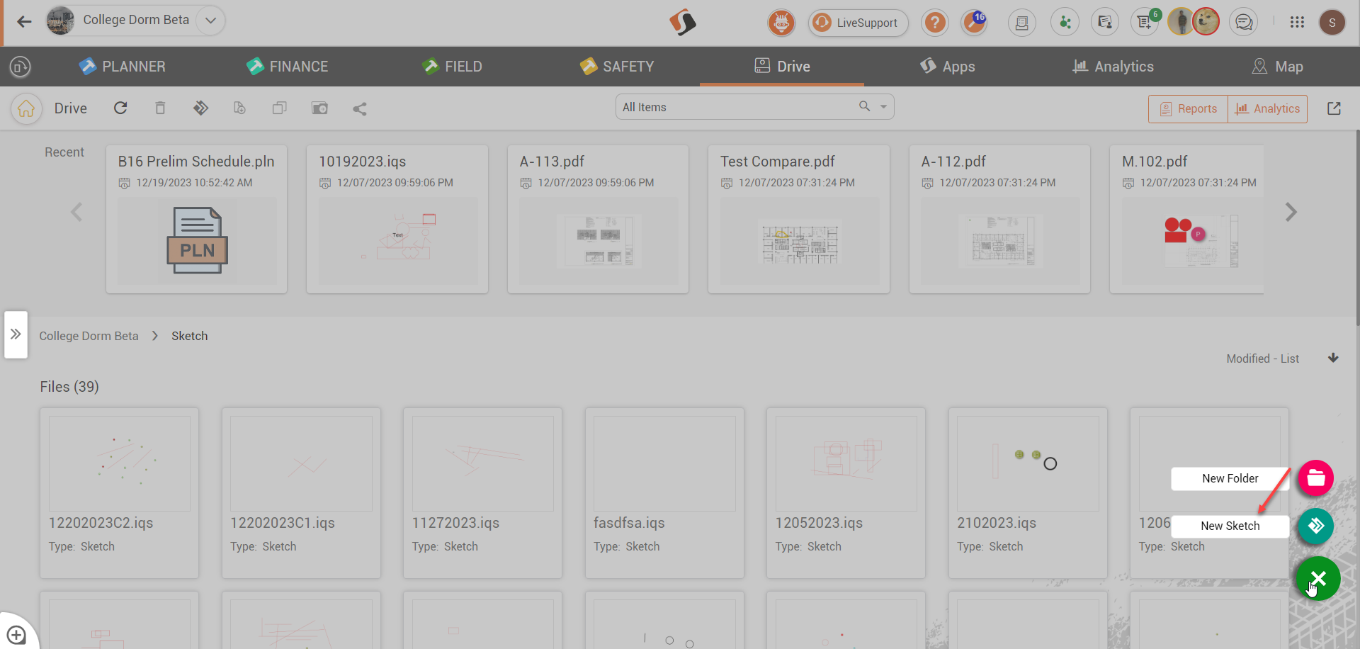 The Sketch Folder type is used to store Sketches created with IQ Sketch. To get started, click on the 'Sketch' Folder in Drive.