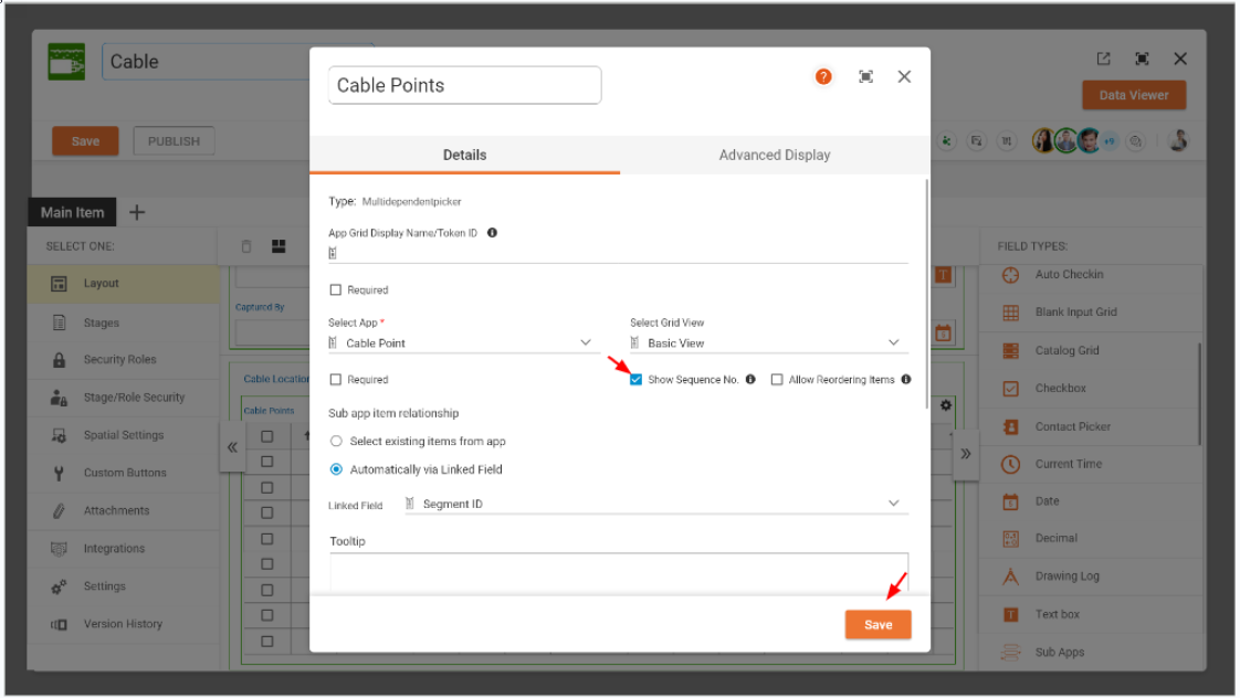 When the 'Show Sequence Number' option is enabled and the App is saved and published: