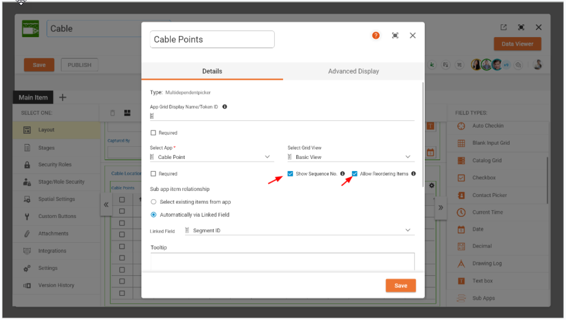 When the 'Allow Reordering' option is checked and the App is saved and published: