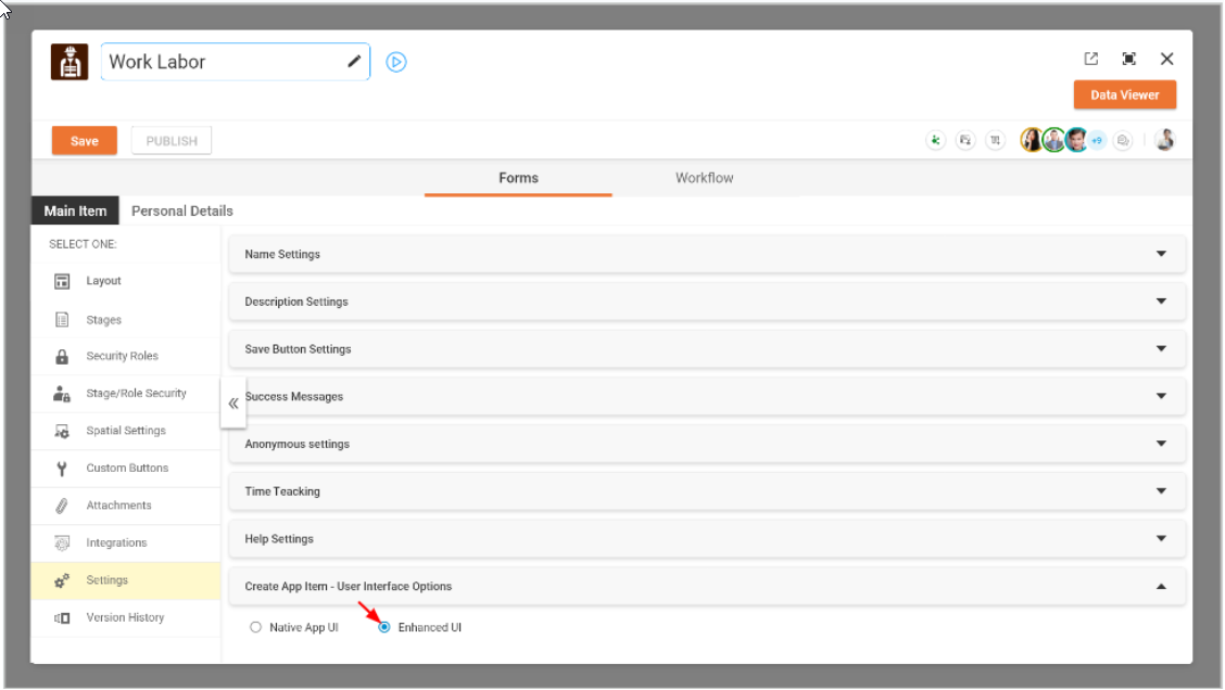 A new configuration option is being introduced, allowing users to select their preferred user interface when creating app items such as Work Labor, Journal Entry, and Daily Impact.