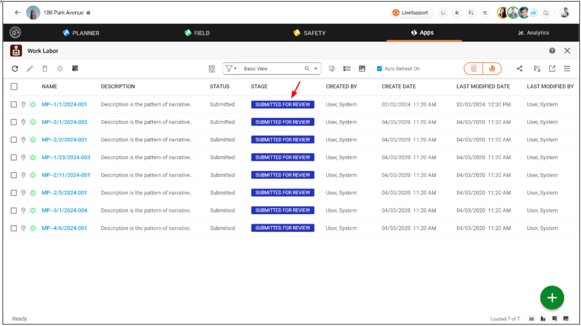When the item is not in 'Draft' status, clicking opens the Native App UI.