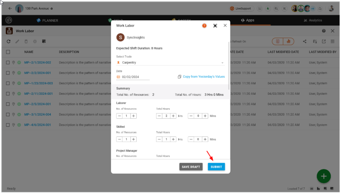 Based on the Daily Settings either Short Labor/Long Labor UI will be shown :