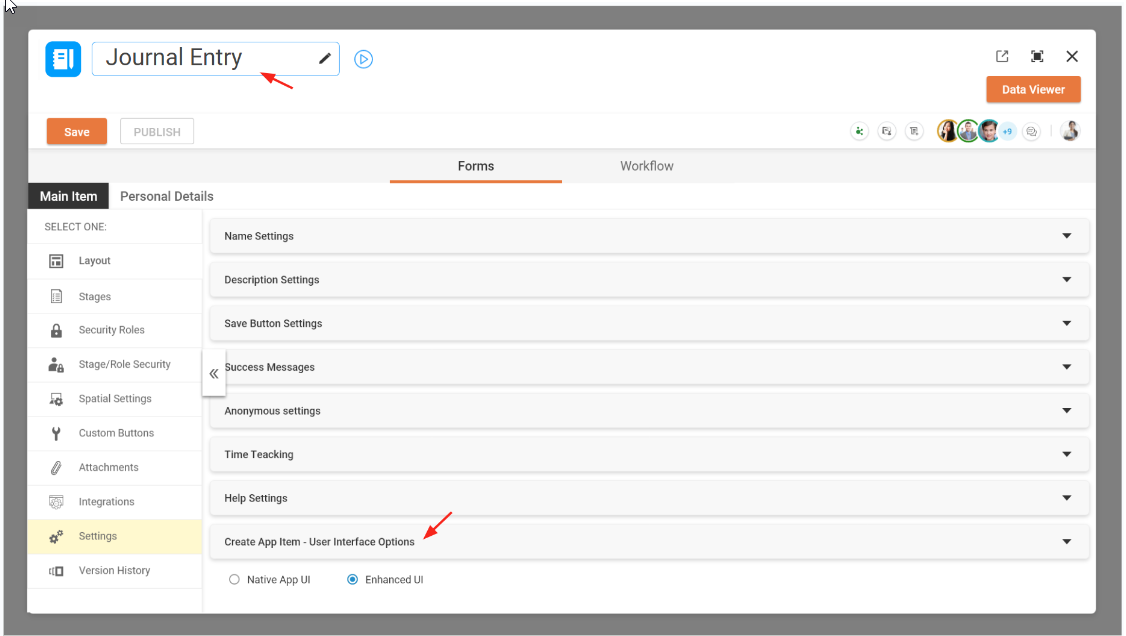 When "Enhanced App UI" is selected, the Enhanced Add Journal UI is invoked upon clicking the "+" button.