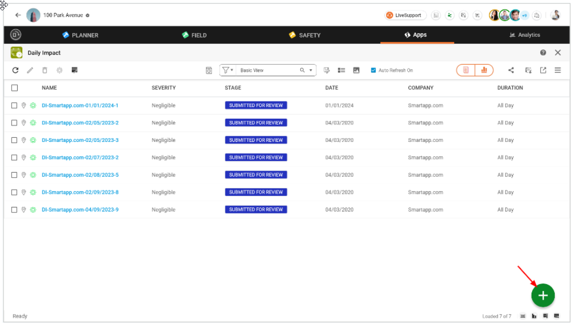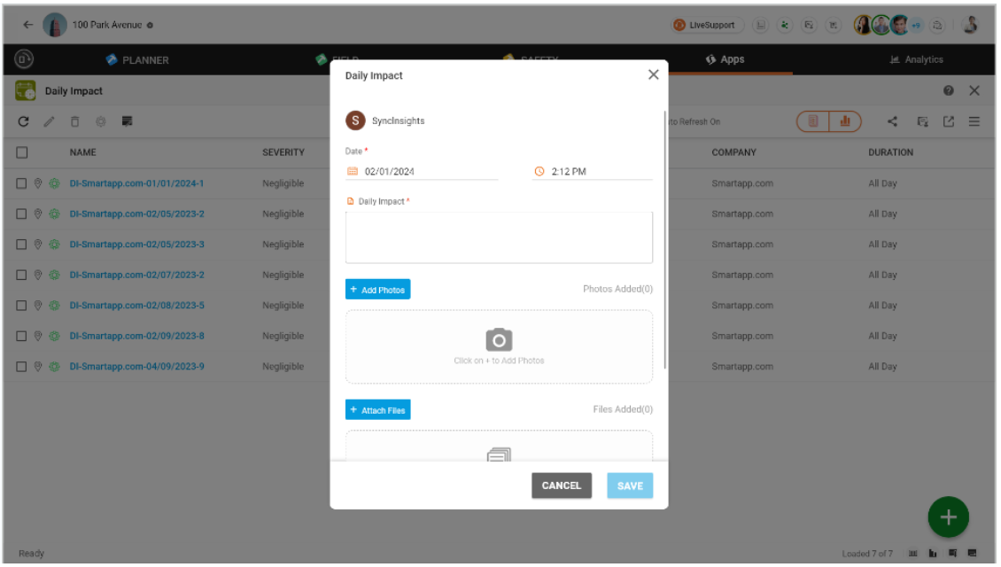 When "Enhanced App UI" is chosen, the Enhanced Add Daily Impact UI is invoked upon clicking the "+" button.
