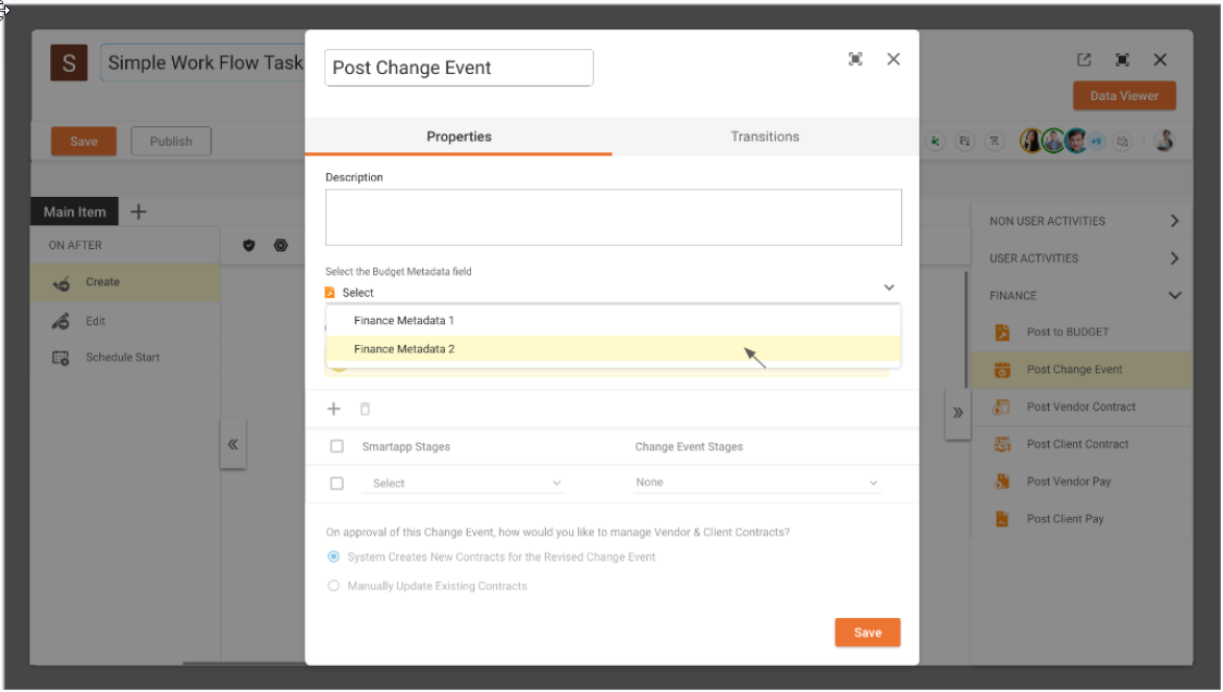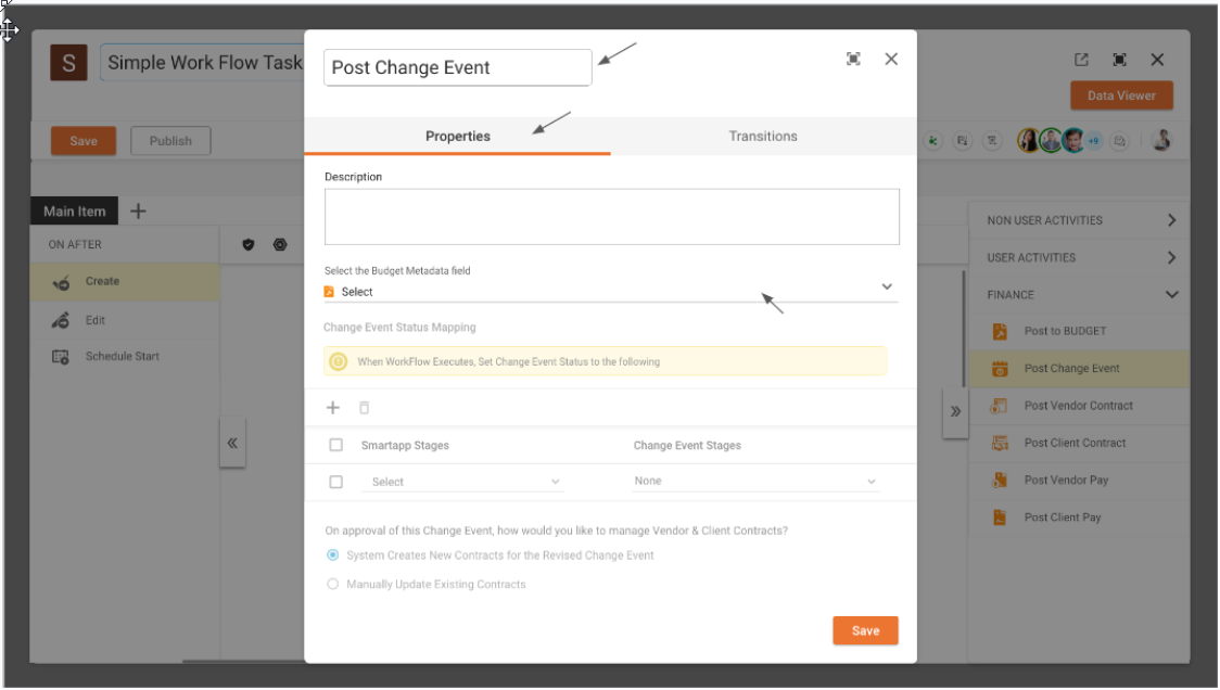 Once the Smartapp Stage and Change Event Stage are mapped, the section below is enabled.