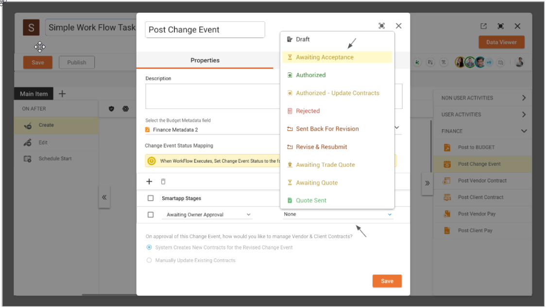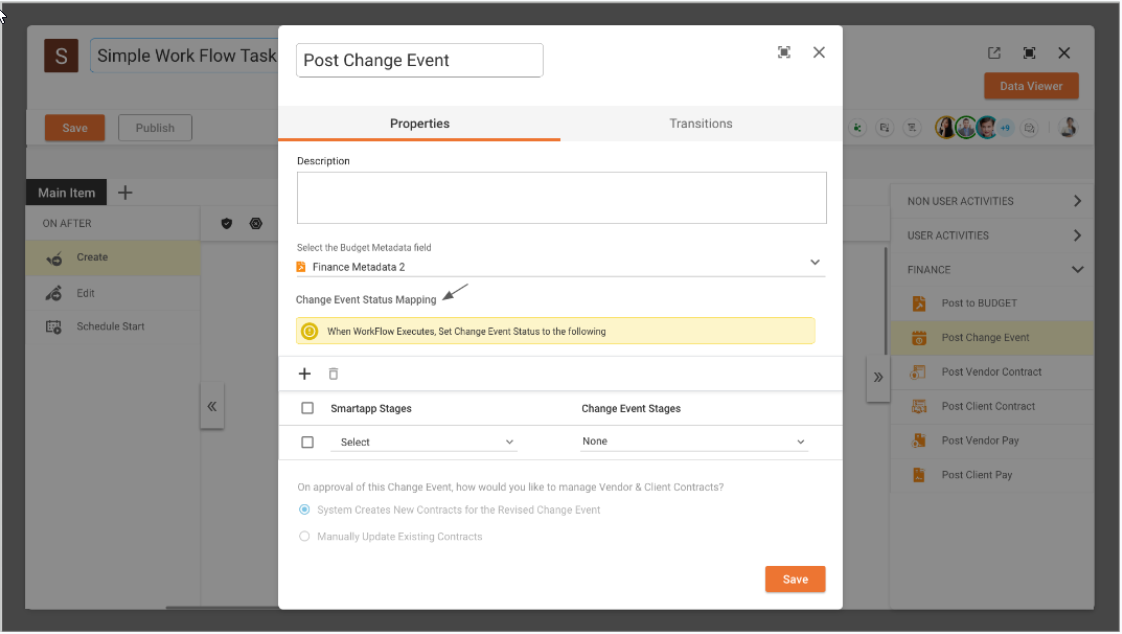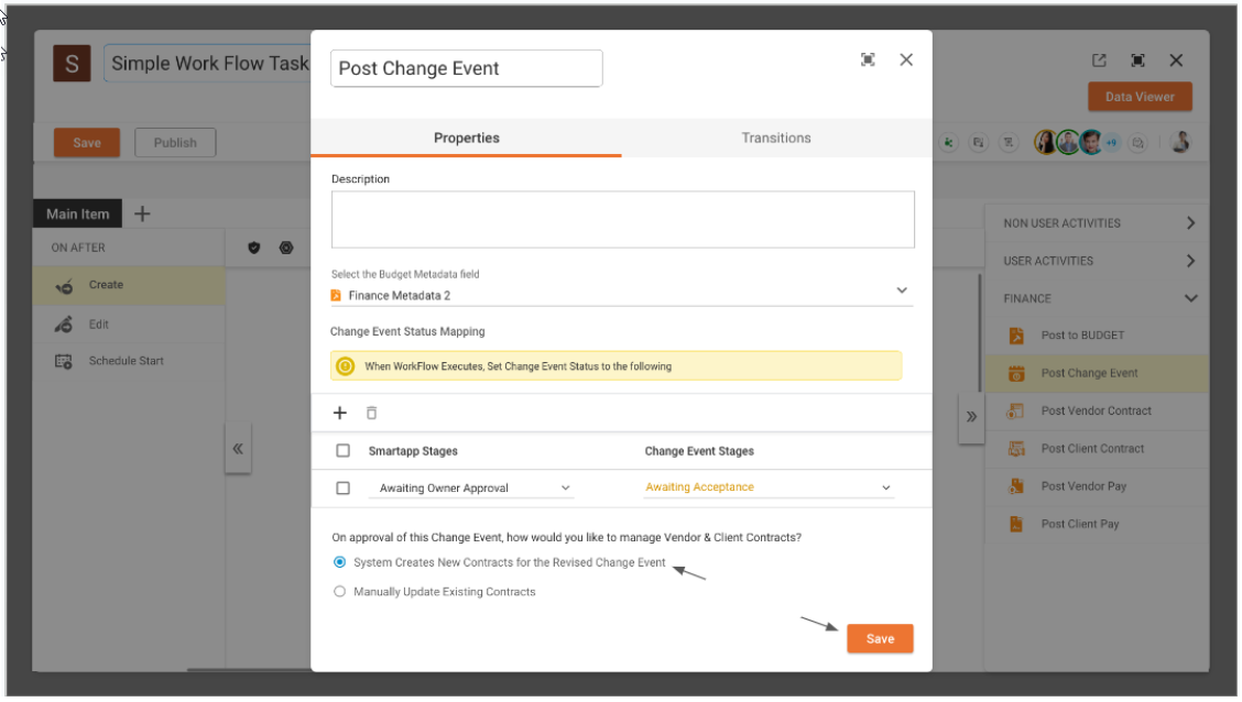 Users need to specify how the Vendor and Client Contracts should be managed on "Change Event Approval":